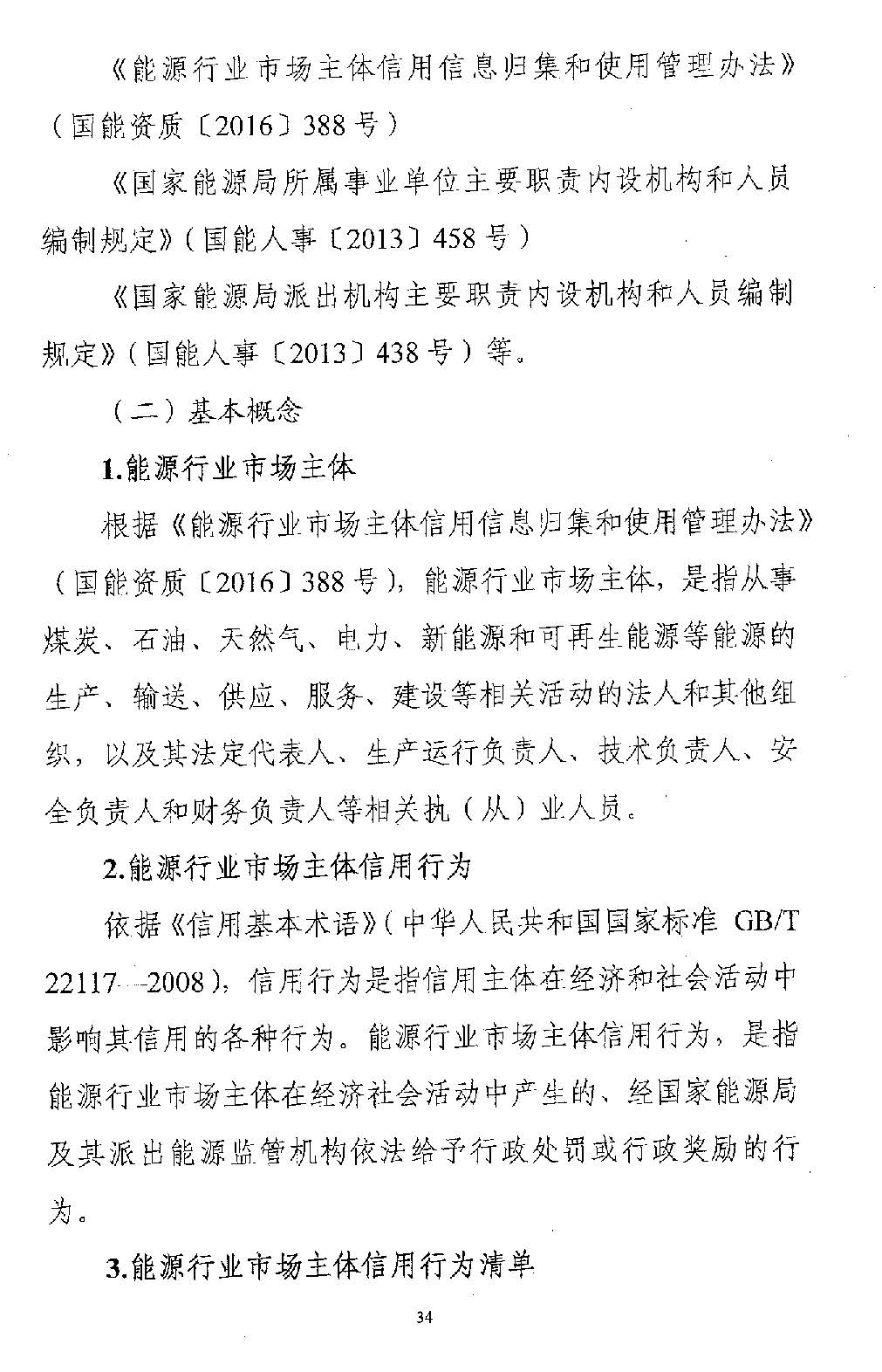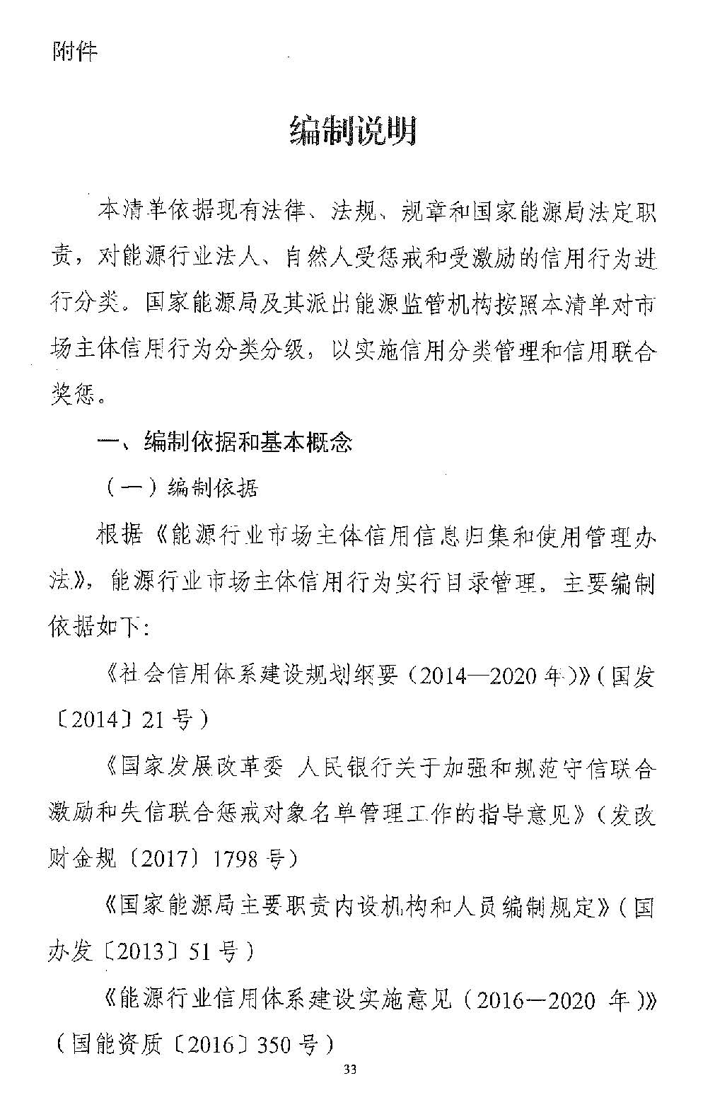 國家能源局印發(fā)《能源行業(yè)市場主體信用行為清單(2018版)》