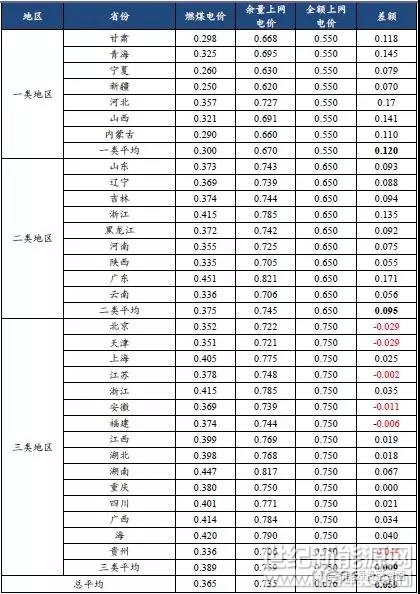 另外,就分布式的兩種上網(wǎng)方式而言,按照最新的標(biāo)桿電價(jià),在大部分省份,“自發(fā)自用,余電上網(wǎng)”方式的電價(jià)已經(jīng)高于全額上網(wǎng)的電價(jià),Ⅰ到Ⅲ類地區(qū)的差額分別達(dá)到了0.120、0.095和0.009元/千瓦時(shí),全國(guó)平均差額達(dá)到了0.059元/千瓦時(shí),這說明 “自發(fā)自用,余電上網(wǎng)”的模式的電價(jià)更高,更具用吸引力,這也是2018年我們更看好戶用分布式的原因。余電上網(wǎng)與全額上網(wǎng)電價(jià)比較(元/千瓦時(shí))見下表: