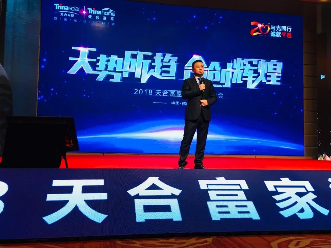 太陽(yáng)能發(fā)電網(wǎng):3月25日,2018天合富家渠道戰(zhàn)略系列峰會(huì)佛山站在佛山順德金茂華美達(dá)廣場(chǎng)酒店盛大舉辦。來(lái)自南寧、深圳、廣州三個(gè)分公司的近400名經(jīng)銷(xiāo)商齊聚會(huì)場(chǎng)。據(jù)了解,本次會(huì)議是天合3月系列招商大會(huì)的最后一站,也是最“厚”一擊,F(xiàn)場(chǎng)人數(shù)爆棚,很多人站著全程聽(tīng)完會(huì)議。原定于16:30結(jié)束的會(huì)議,因?yàn)榇蚩钊藬?shù)過(guò)多,硬生生多延長(zhǎng)了半小時(shí),簽單額再