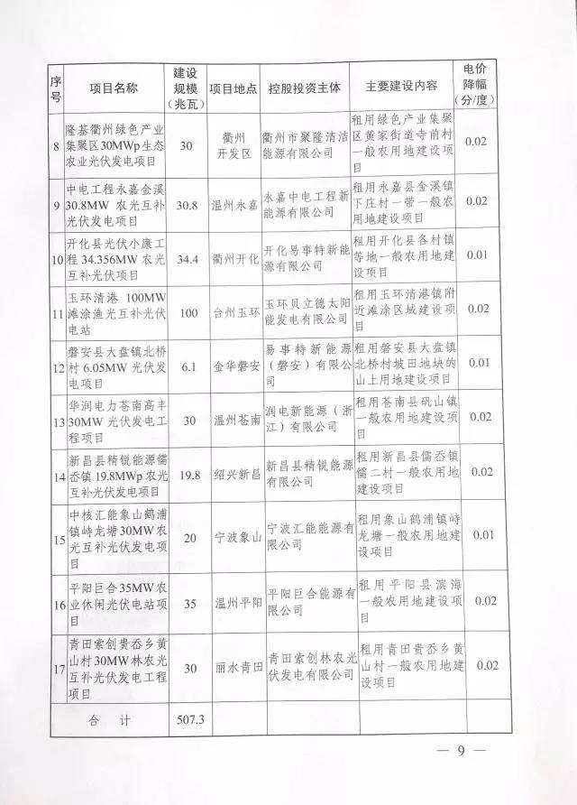 浙江2017年度及2018年度(部分)普通地面光伏電站指標發(fā)布