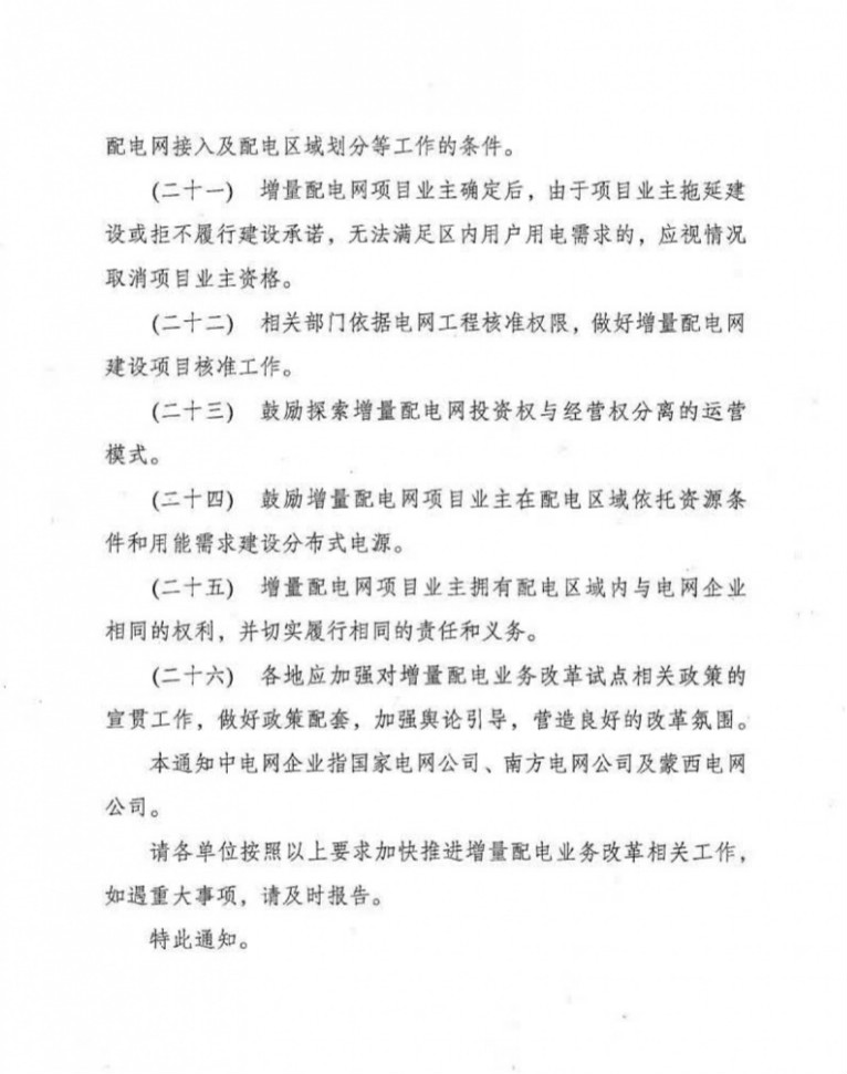 《關(guān)于進(jìn)一步推進(jìn)增量配電業(yè)務(wù)改革的通知(征求意見稿)》