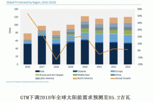 與此同時(shí),GTM預(yù)計(jì)中國今年的需求量將從48.2吉瓦降至28.8吉瓦,低于TrendForce預(yù)測的31.6吉瓦。預(yù)計(jì)中國從現(xiàn)在到2022年將部署141吉瓦容量,而最初估計(jì)為206吉瓦。