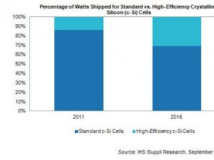 根據(jù)HIS公司iSuppli的最新光伏市場分析報告,隨著太陽能行業(yè)價格和利潤的惡性循環(huán)式發(fā)展,高效晶硅光伏電池的市場份額在2015年增加一倍。