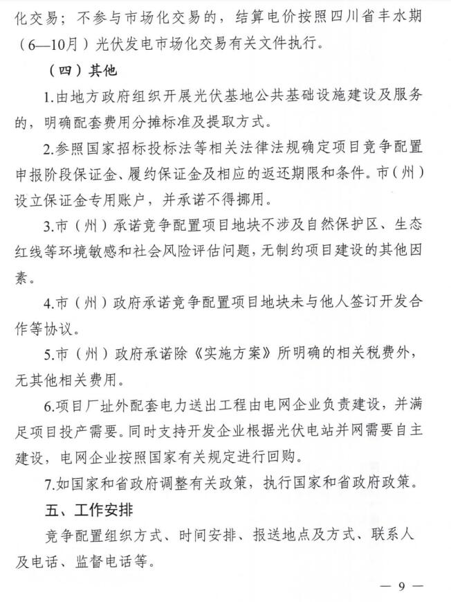 近日,四川省發(fā)改委、能源局聯(lián)合印發(fā)《四川省2020年光伏發(fā)電項目競爭配置工作方案》,確定2020年度光伏項目規(guī)模為80萬千瓦。同時,明確規(guī)定,2020年度光伏發(fā)電競爭配置項目須納入光伏基地規(guī)劃,并在有電網(wǎng)送出條件的光伏場址區(qū)內(nèi),原則上單個標的項目建設(shè)規(guī)模不得低于10萬千瓦。以下是《四川省2020年光伏發(fā)電項目競爭配置工