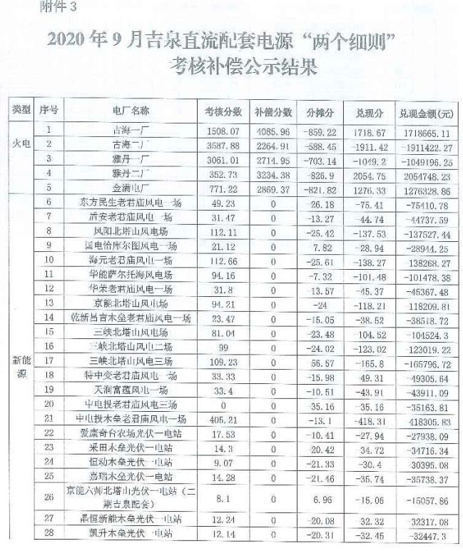 9月份新疆電網(wǎng)、天中、吉泉直流配套電源“兩個(gè)細(xì)則”考核補(bǔ)償結(jié)果公示