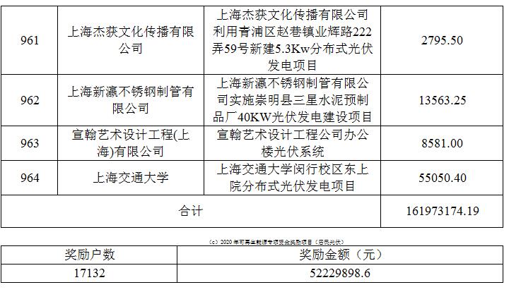 上海市2020年度可再生能源專項資金撥付計劃(草案)公示