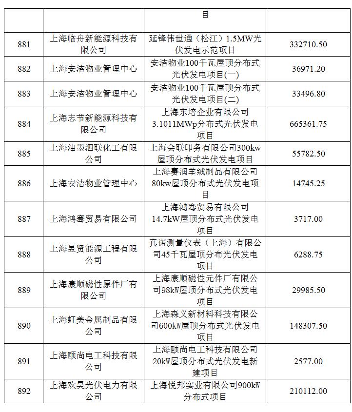 今日上海市發(fā)展和改革委員會發(fā)布《2020年度可再生能源專項資金撥付計劃(草案)公示》,詳情如下:上海市2020年度可再生能源專項資金撥付計劃(草案)公示為促進(jìn)全市可再生能源發(fā)展,推進(jìn)節(jié)能減排和能源結(jié)構(gòu)優(yōu)化調(diào)整,根據(jù)《上海市可再生能源和新能源發(fā)展專項資金扶持辦法》(滬發(fā)改能源〔2016〕136號)、《上海市可