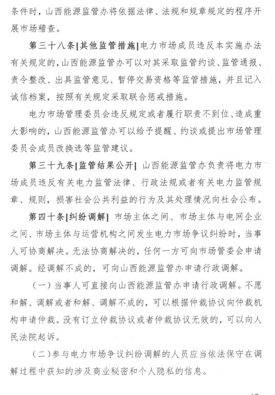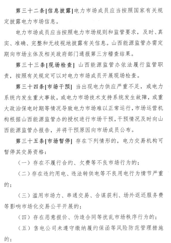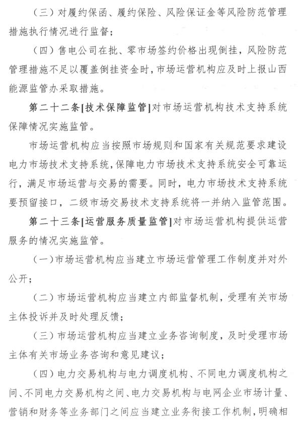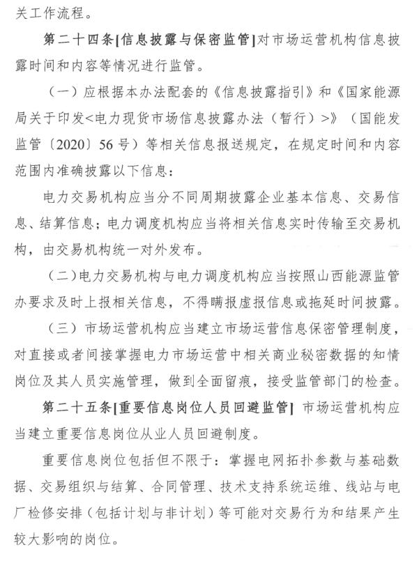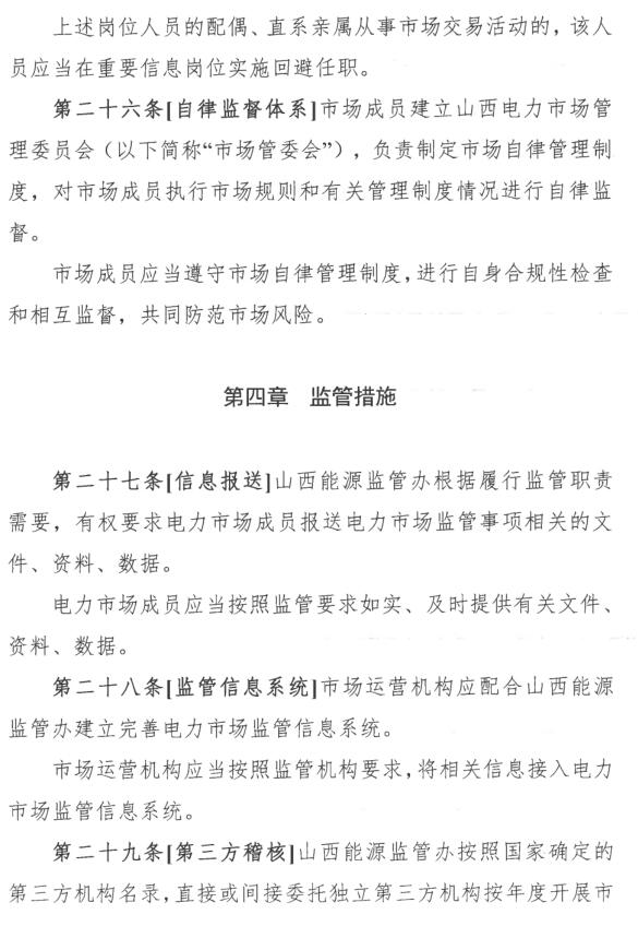 從山西能源監(jiān)管辦獲悉:近日,山西能源監(jiān)管辦出臺(tái)了《山西電力市場(chǎng)監(jiān)管實(shí)施辦法(試行)》及《山西電力市場(chǎng)信息披露指引》、《山西電力市場(chǎng)運(yùn)營(yíng)機(jī)構(gòu)監(jiān)管指引》、《山西電力市場(chǎng)監(jiān)測(cè)和關(guān)聯(lián)及異常交易行為認(rèn)定指引》、《山西電力市場(chǎng)風(fēng)險(xiǎn)防范指引》四個(gè)配套指引,自印發(fā)之日起試行。據(jù)悉,自2015年中發(fā)9號(hào)文印發(fā)以來(lái),山西電力體制