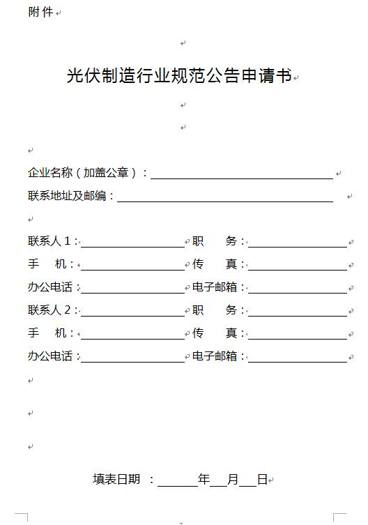 附:光伏制造行業(yè)規(guī)范條件申請書