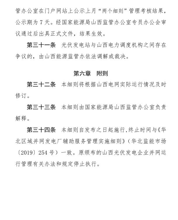 今日,山西能源監(jiān)管辦印發(fā)山西并網(wǎng)發(fā)電廠輔助服務(wù)管理實(shí)施細(xì)則和并網(wǎng)運(yùn)行管理實(shí)施細(xì)則(2021年修訂版)的通知。通知表示,《山西光伏發(fā)電站并網(wǎng)運(yùn)行管理實(shí)施細(xì)則》自7月1日起施行,原細(xì)則及補(bǔ)充修訂條款同時(shí)廢止。通知及《山西光伏發(fā)電站并網(wǎng)運(yùn)行管理實(shí)施細(xì)則》全文如下: