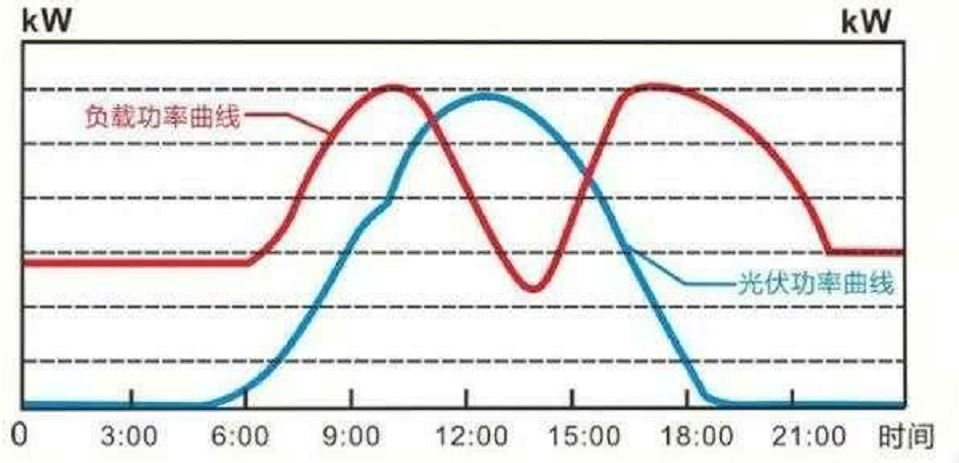 圖:光伏功率曲線與負(fù)載功率曲線不匹配,資料來源:戶用光伏網(wǎng),長江證券