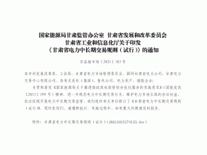 日前,甘肅能源監(jiān)管辦、甘肅發(fā)改委、甘肅省工信廳聯(lián)合發(fā)布關(guān)于印發(fā)《甘肅省電力中長期交易規(guī)則(試行)》的通知。為與甘肅電力現(xiàn)貨市場相銜接,依法維護(hù)電力市場主體的合法權(quán)益,保證電力市場建設(shè)工作統(tǒng)一、開放、競爭、有序,結(jié)合甘肅省實(shí)際,制定本規(guī)則,現(xiàn)印發(fā)正式實(shí)施。