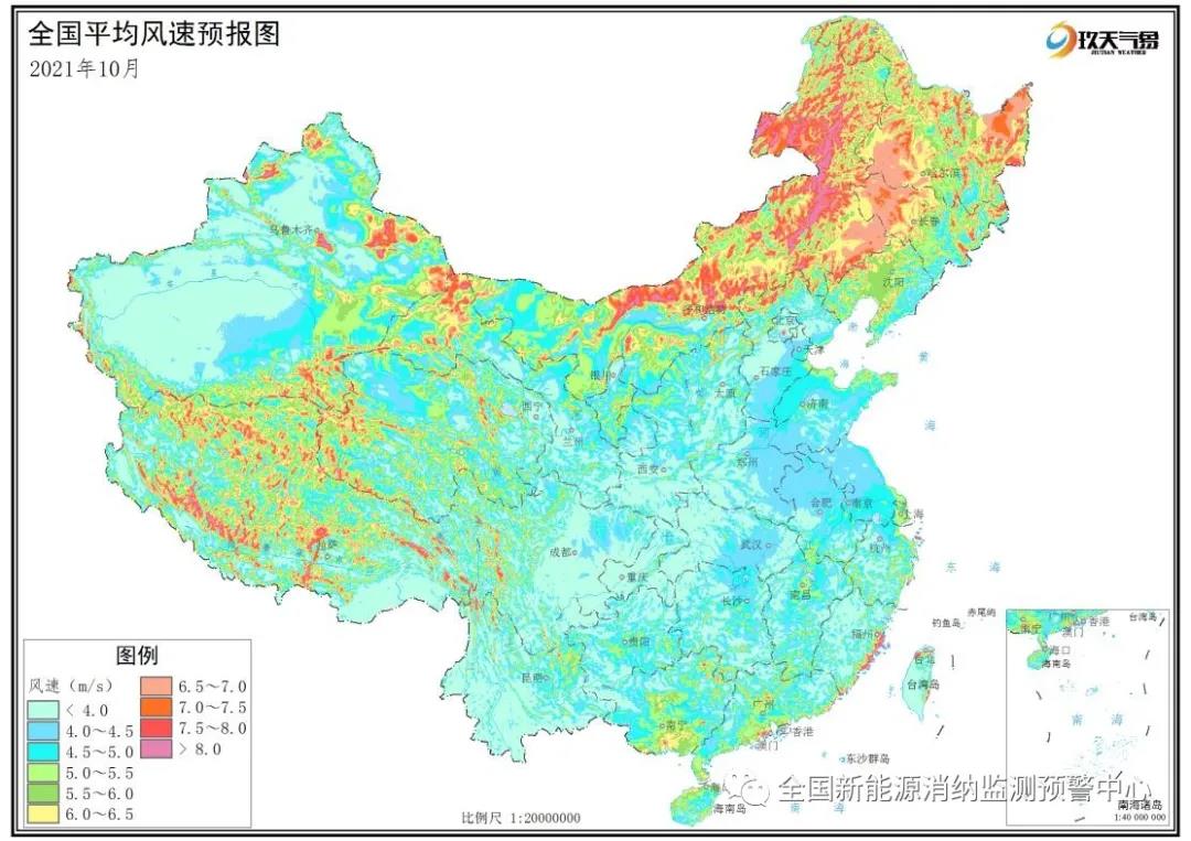 附圖1 全國2021年10月平均風(fēng)速分布預(yù)報圖