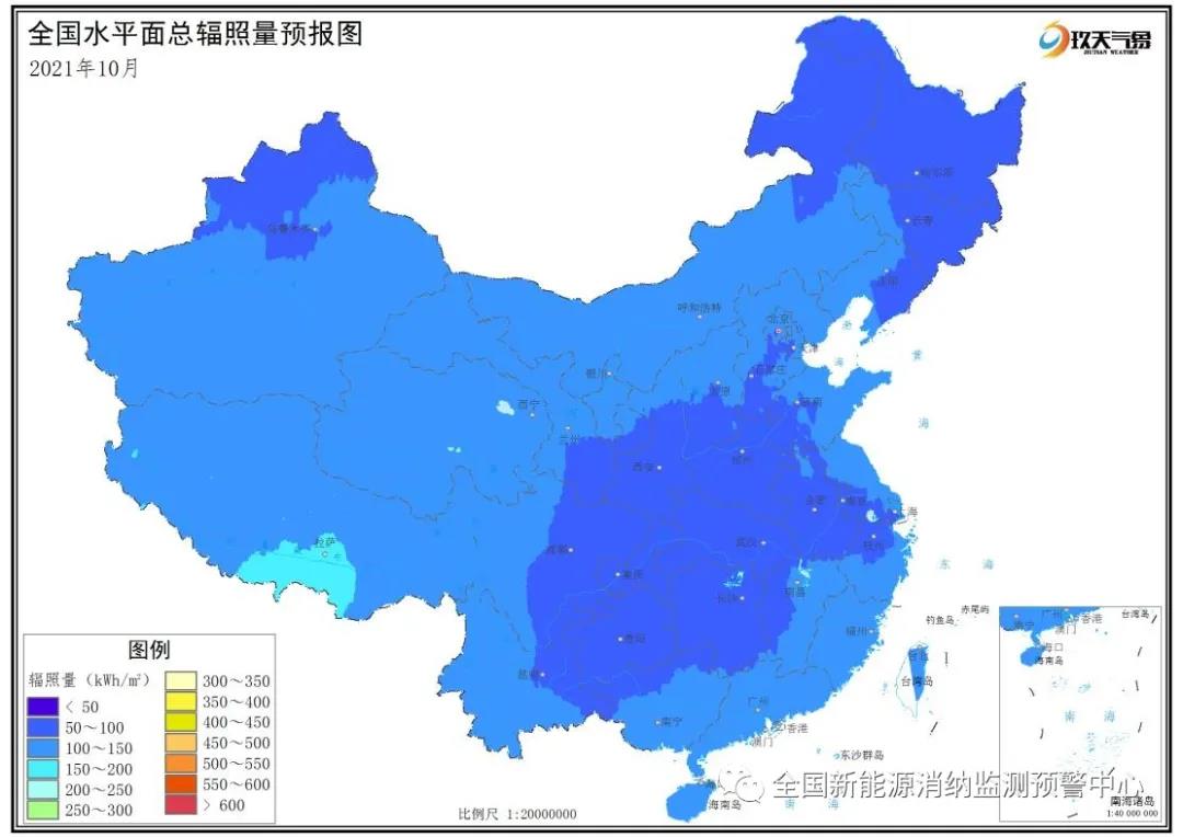 附圖2 全國2021年10月水平面總輻照量預(yù)報圖