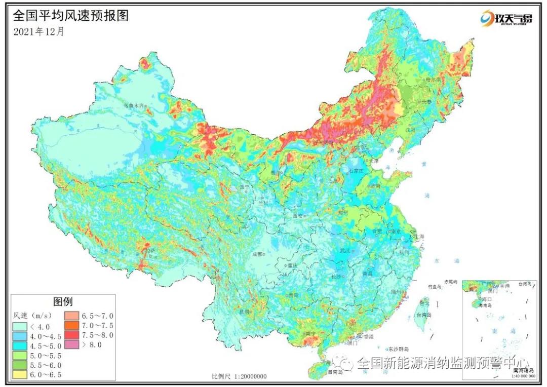 風(fēng)能方面,三季度全國各地風(fēng)況變化不大。10月和11月,全國各地風(fēng)況較為接近。12月平均風(fēng)速呈減小趨勢,風(fēng)速高值區(qū)域較前兩月有所減少,風(fēng)速低值區(qū)域較前兩月有所增加。