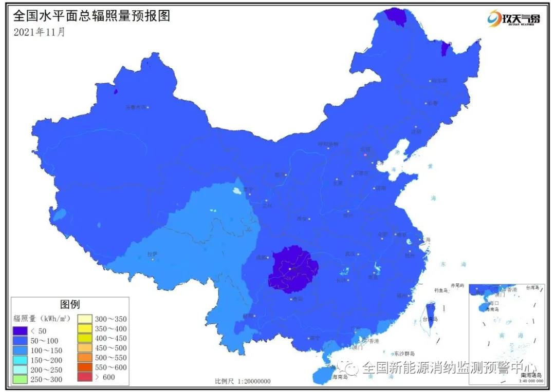 附圖4 全國2021年11月水平面總輻照量預(yù)報圖