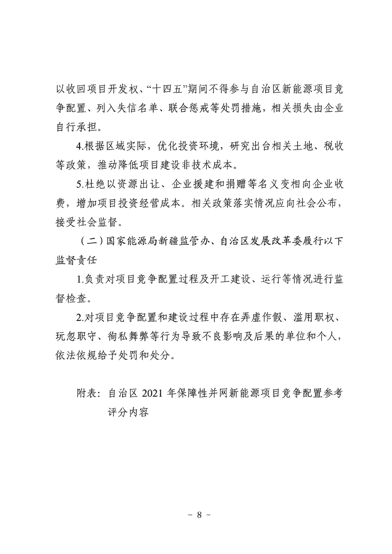 12月10日,新疆自治區(qū)發(fā)展改革委、國家能源局新疆監(jiān)管辦發(fā)布關(guān)于2021年風電、光伏發(fā)電年度開發(fā)建設(shè)方案有關(guān)事項的通知。通知指出,根據(jù)國家下達我區(qū)2021年度非水電最低消納責任權(quán)重12.5%,2022年非水電消納責任權(quán)重最低預(yù)期值13.75%目標,新疆2021—-2022年新增風電、光伏發(fā)電項目保障性并網(wǎng)規(guī)模約526萬千瓦(不含2