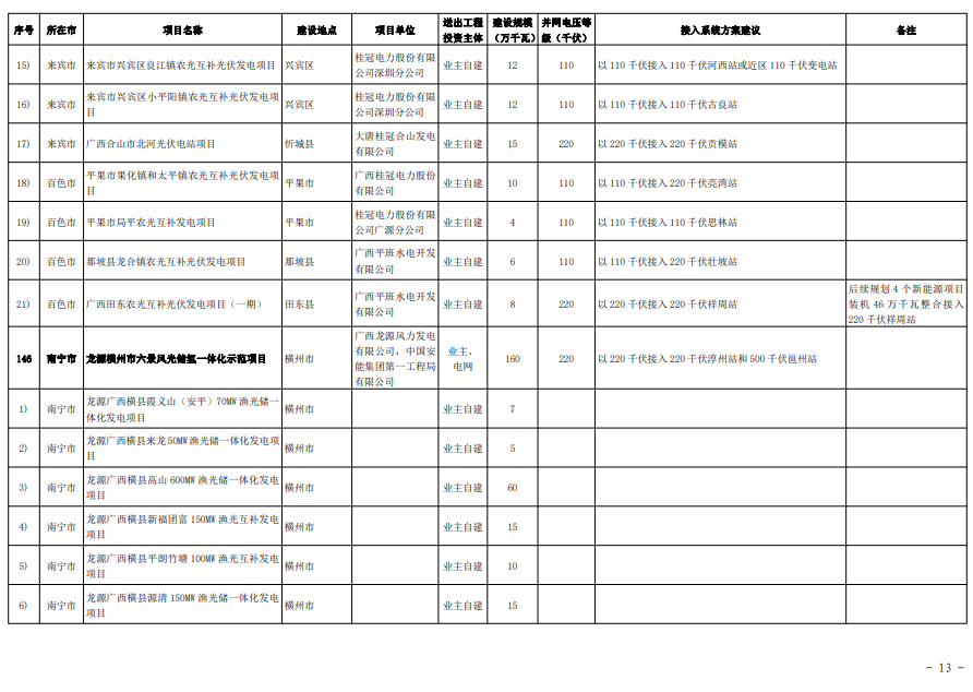 從廣西自治區(qū)發(fā)改委獲悉:近日,《廣西壯族自治區(qū)加快推進(jìn)既有陸上風(fēng)電、光伏發(fā)電項(xiàng)目及配套設(shè)施建設(shè)方案》(以下簡(jiǎn)稱《方案》)發(fā)布實(shí)施,全面加快既有陸上風(fēng)電和光伏發(fā)電項(xiàng)目建設(shè),力爭(zhēng) 2020年及以前獲得建設(shè)指標(biāo)的項(xiàng)目全部在 2023 年底前建成投產(chǎn),納入2021 年建設(shè)方案的項(xiàng)目 2023 年前實(shí)現(xiàn)全部開(kāi)工,“十四五”期