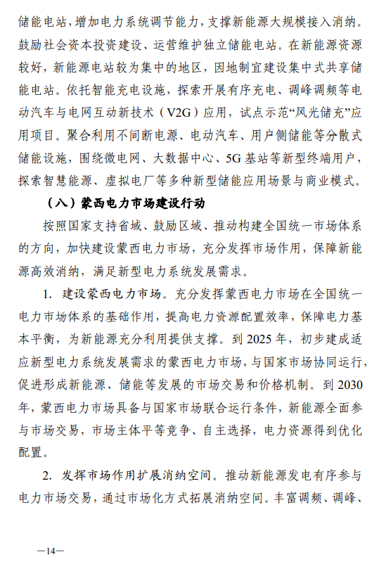 4月24日,內(nèi)蒙古自治區(qū)能源局正式印發(fā)《蒙西新型電力系統(tǒng)建設(shè)行動方案(2021-2030年)(1.0版)》(下稱《方案》),設(shè)定了“十四五”和“十五五”能源發(fā)展的總體目標(biāo):到 2025 年,新能源裝機(jī)規(guī)模超過火電裝機(jī)規(guī)模,新能源發(fā)電量占總發(fā)電量比重達(dá)到 35%以上。到 2030年,新能源發(fā)電總量力爭超過火電發(fā)電總