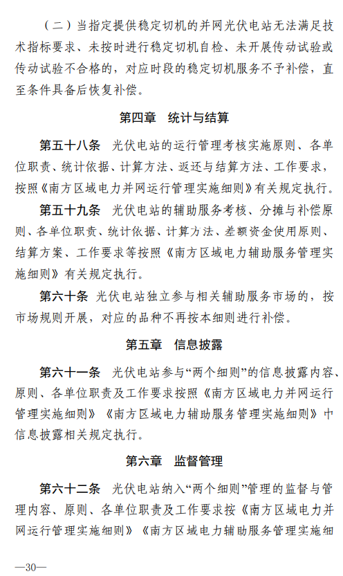 6月13日,國家能源局南方監(jiān)管局印發(fā)《南方區(qū)域電力并網(wǎng)運行管理實施細則》《南方區(qū)域電力輔助服務(wù)管理實施細則》及及相關(guān)專項實施細則。其中,包括《南方區(qū)域光伏發(fā)電并網(wǎng)運行及輔助服務(wù)管理實施細則》。細則》明確,《南方區(qū)域光伏發(fā)電并網(wǎng)運行及輔助服務(wù)管理實施細則》適用于南方區(qū)域地市級及以上電力調(diào)度機構(gòu)直接調(diào)度的容量