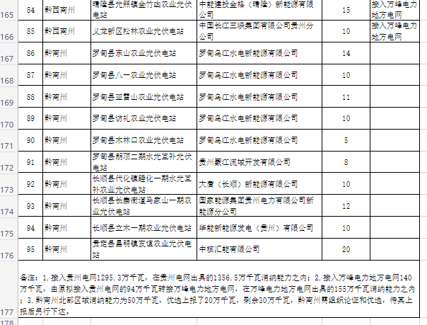據(jù)貴州省能源局官網(wǎng):7月15日,貴州省能源局印發(fā)關(guān)于下達(dá)貴州省2022年風(fēng)電光伏發(fā)電年度建設(shè)規(guī)模項(xiàng)目的通知,為推進(jìn)新能源產(chǎn)業(yè)健康有序發(fā)展,根據(jù)有關(guān)規(guī)定,制定了貴州省2022年風(fēng)電光伏發(fā)電年度建設(shè)規(guī)模,共計(jì)176個(gè)項(xiàng)目,總裝機(jī)1435.3萬千瓦,其中風(fēng)電項(xiàng)目75個(gè),542.1萬千瓦,光伏發(fā)電項(xiàng)目95個(gè),893.2萬千瓦。擬接入貴州電網(wǎng)