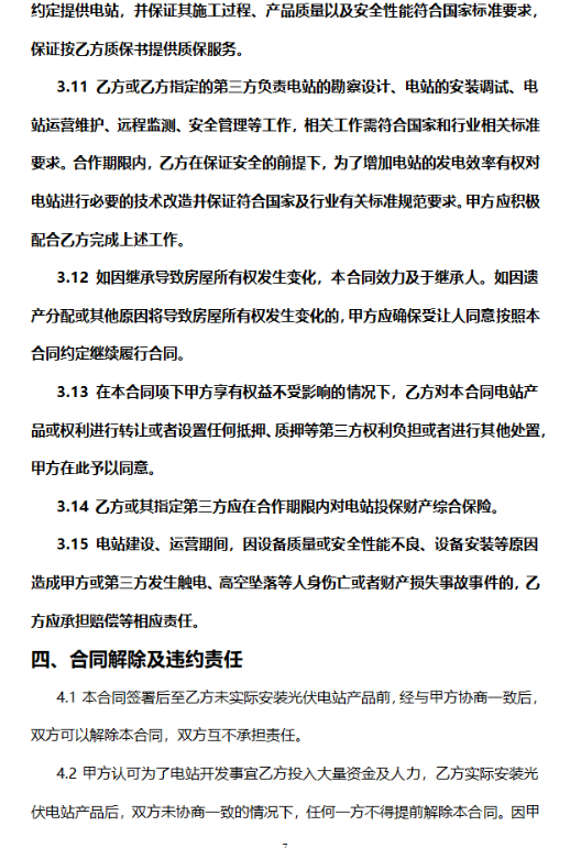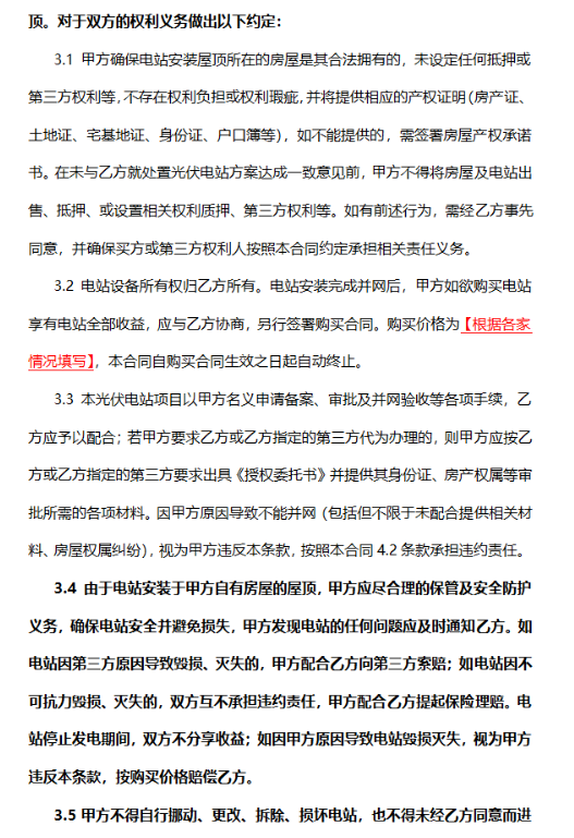 日前,中國光伏行業(yè)協(xié)會在充分征求各方面意見基礎上,編制發(fā)布了《戶用光伏產(chǎn)品銷售安裝合同(范本)》和《戶用光伏電站合作開發(fā)合同(范本)》,供居民用戶和光伏開發(fā)企業(yè)、戶用光伏經(jīng)銷商等各方參考。 1. 《戶用光伏產(chǎn)品銷售安裝合同(范本)》