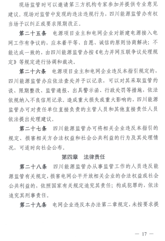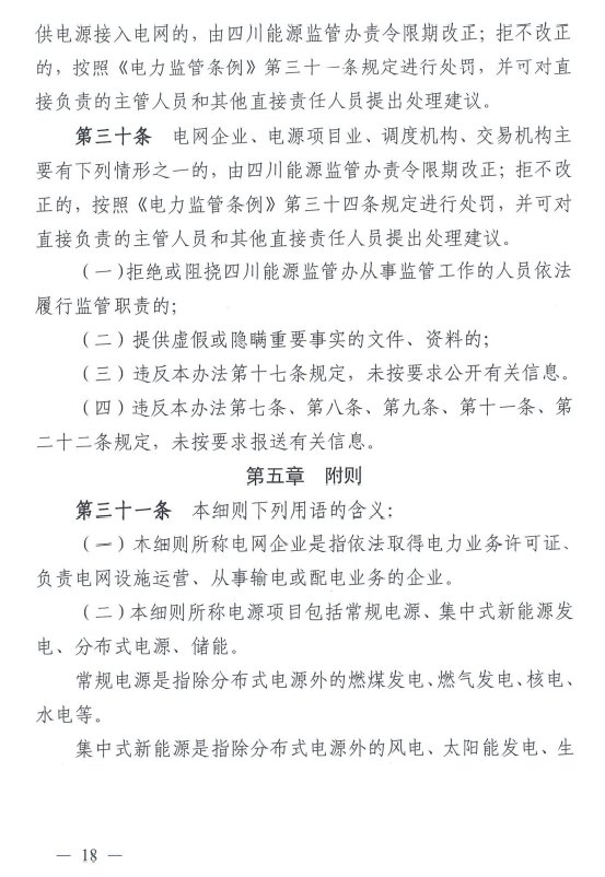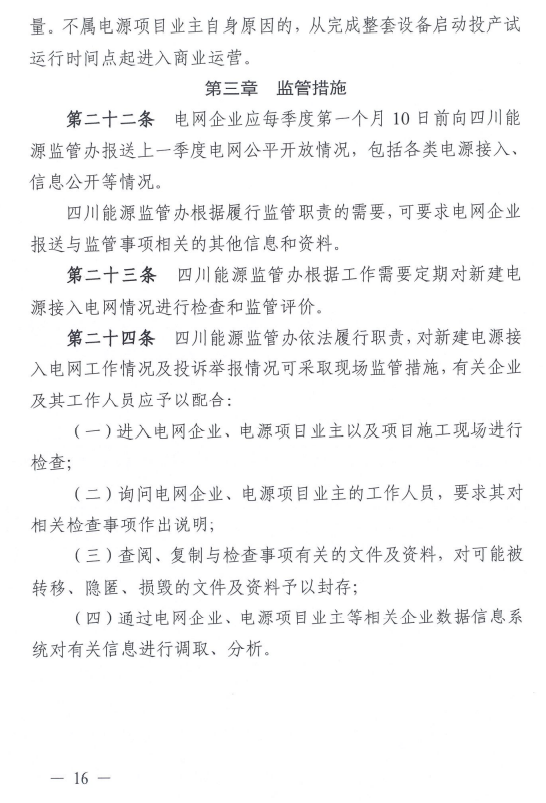 《四川新建電源接入電網(wǎng)監(jiān)管實施細則》公開征求意見
