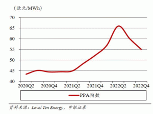 2022年以來,受到地緣沖突下各國相互制約的影響,歐洲陷入能源緊缺局面,天然氣價格高位運行帶動電價快速上漲,根據可再生能源交易基礎設施提供商Level Ten Energy的數據,2022年可再生能源購電協議新簽價格最高超過65歐元/MWh,相比往年約45歐元/MWh的價格中樞有明顯漲幅,高電價使得2022年歐洲戶儲裝機躍升。