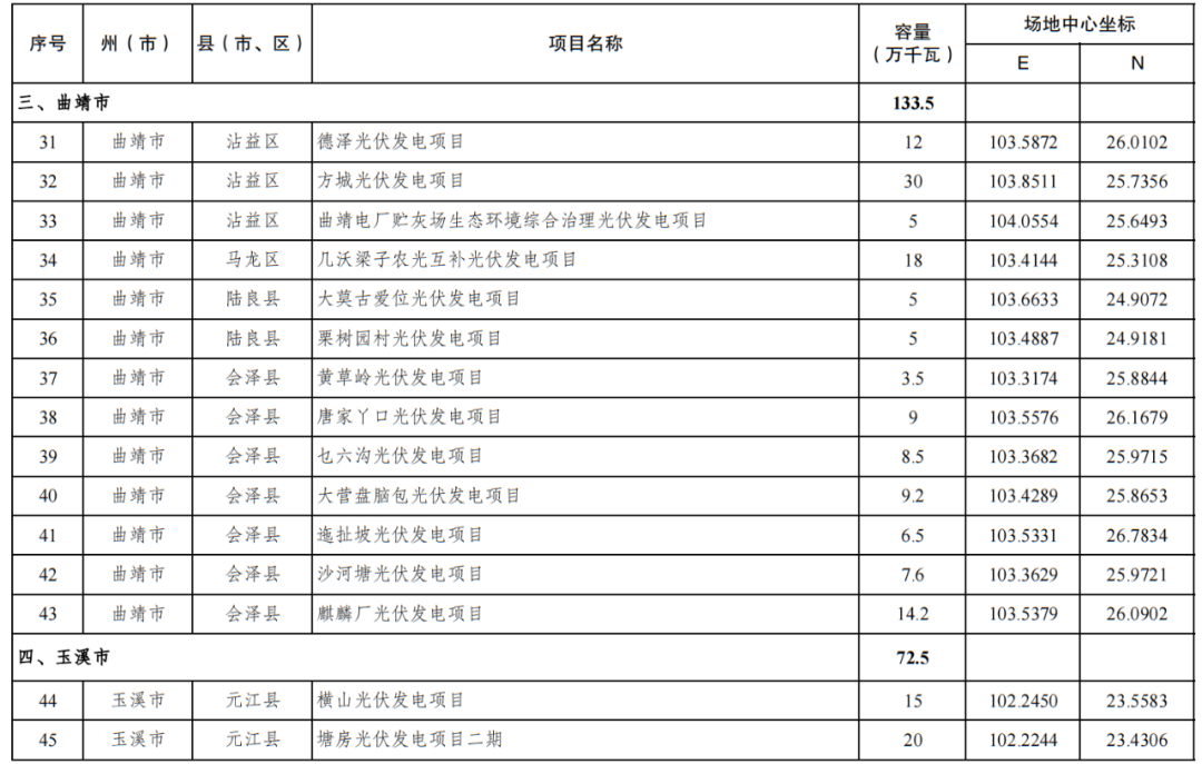 6月13日,云南發(fā)改委、能源局聯(lián)合印發(fā)《云南省2023年第一批新能源建設(shè)方案》。方案明確,為確保實(shí)現(xiàn)2023年新開(kāi)工新能源1500萬(wàn)千瓦、投產(chǎn)并網(wǎng)新能源項(xiàng)目裝機(jī)1500萬(wàn)千瓦的目標(biāo),納入云南省2023年第一批新能源年度建設(shè)方案實(shí)施的項(xiàng)目共154個(gè),裝機(jī)1579.17萬(wàn)千瓦。