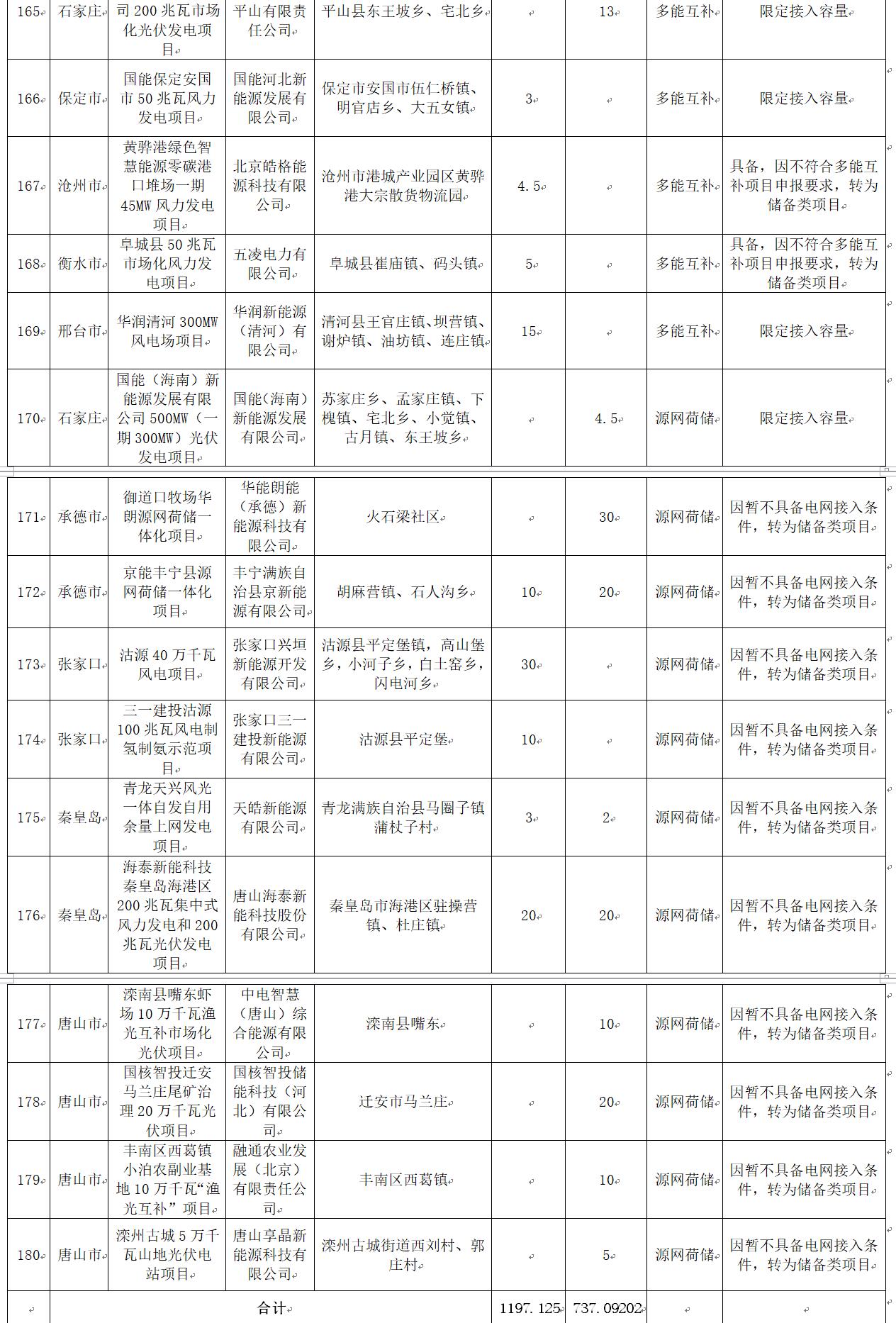 6月29日,河北省發(fā)改委發(fā)布《河北省風(fēng)電、光伏發(fā)電年度開(kāi)發(fā)建設(shè)方案擬安排項(xiàng)目情況公示》,本次擬公示保障性項(xiàng)目共159個(gè)、1480.849萬(wàn)千瓦,市場(chǎng)化項(xiàng)目共56個(gè)、597.588萬(wàn)千瓦(多能互補(bǔ)33個(gè)、302.8萬(wàn)千瓦,源網(wǎng)荷儲(chǔ)23個(gè)、294.788萬(wàn)千瓦),儲(chǔ)備類(lèi)項(xiàng)目共180個(gè)、1934.21702萬(wàn)千