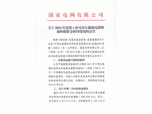 公告稱,公司嚴(yán)格按照財(cái)政部《關(guān)于調(diào)劑2023年可再生能源電價(jià)附加補(bǔ)助資金預(yù)算的通知》(財(cái)資〔2023〕93號(hào))中明確的補(bǔ)貼資金撥付原則和順序,在收到財(cái)政部撥付款項(xiàng)后,對(duì)納入補(bǔ)貼目錄或清單且滿足結(jié)算條件的各類項(xiàng)目進(jìn)行及時(shí)、足額轉(zhuǎn)付。具體情況見各省電力公司公告。