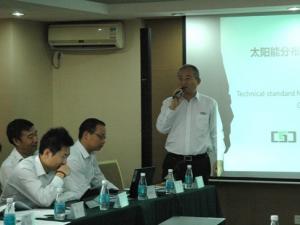 深圳藍(lán)波綠建集團(tuán)總裁徐寧先生在會(huì)上致歡迎詞,他強(qiáng)調(diào)了分布式光伏發(fā)電系統(tǒng)并網(wǎng)技術(shù)規(guī)范編制的重要性和緊迫性,并對(duì)各參會(huì)企業(yè)的到來(lái)表示感謝。本次會(huì)議主要討論分布式光伏發(fā)電并網(wǎng)接入的技術(shù)標(biāo)準(zhǔn),解決分布式光伏發(fā)電的并網(wǎng)原則。各參會(huì)代表主要在系統(tǒng)定位、電能質(zhì)量安全性、通信、電能計(jì)量等方面,展開了熱烈的討論。會(huì)議得到了光伏業(yè)內(nèi)企業(yè)的重視,包括英利、拓日、深圳新能等18個(gè)企業(yè)派代表出席,參加會(huì)議專家人數(shù)達(dá)40余人。