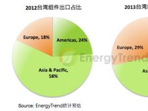 由于中歐限價(jià)并無(wú)明確文件指出目前的最低價(jià)格,一般公認(rèn)在第四季的限價(jià)會(huì)略低于今年四月份所訂的每瓦0.53歐元價(jià)格。以目前成本做觀察,相對(duì)于最低價(jià)格,臺(tái)廠在歐洲仍有不錯(cuò)的成本優(yōu)勢(shì),因此為避免受到反規(guī)避波及喪失歐洲市場(chǎng),臺(tái)廠皆積極提出應(yīng)對(duì)資料以自清。觀察2012及2013年資料,臺(tái)灣對(duì)歐洲出口的組件約占臺(tái)灣整體的出口量18%及29%,而亞太市場(chǎng)一向占臺(tái)灣組件出口的一半以上,其中又以日本為最大宗。