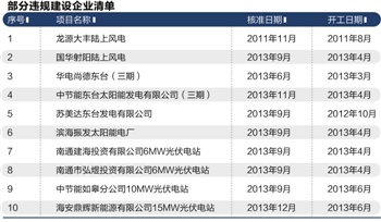 華電國際旗下華電尚德東臺(三期)項目核準(zhǔn)日期為2013年6月,但實際開工日期卻是2013年3月份,比核準(zhǔn)日期提前3個月;蘇美達(dá)東臺發(fā)電有限公司開工時間比核準(zhǔn)時間提前11個月,其獲得核準(zhǔn)時間為2013年9月,開工建設(shè)時間為2012年10月。