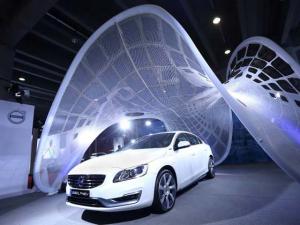 沃爾沃可折疊太陽能充電傘和沃爾沃S60L插電式混合動力車