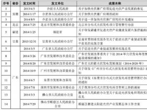 “國八條”之后,各地方出臺的光伏鼓勵政策清單