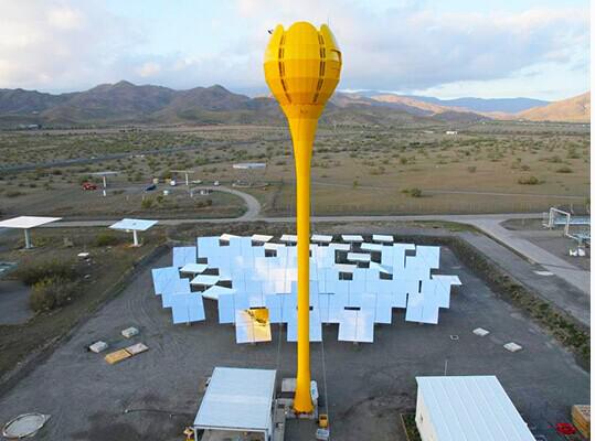這個獨特的設(shè)計幾乎占用不了多少空間,每個模塊占地約3500平米,但卻可以產(chǎn)生100 kWh的電能和170kWh的熱能,用水量僅為普通聚光型太陽能發(fā)電工程用水量的8%。這個花瓣形狀的設(shè)計不僅是為了美觀,這個形狀更可以使太陽加熱里面的空氣,以產(chǎn)生電能。