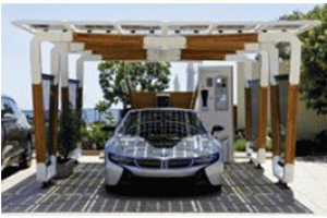 圖為寶馬設(shè)計(jì)的太陽能停車棚
