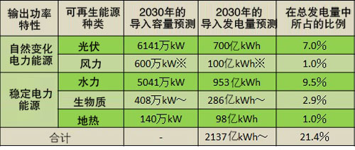 此次估算的可再生能源比例為“21%”,基本與第4次能源基本計劃中列出的可再生能源導(dǎo)入量最低標(biāo)準(zhǔn)(2140億kWh,構(gòu)成比例為21%)相當(dāng)。今后要討論的內(nèi)容是,追加可再生能源促進(jìn)政策之后,能在21%的基礎(chǔ)上提高多少比例。
