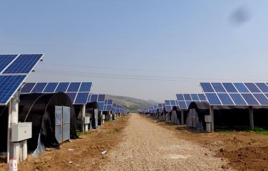 平泉縣的設(shè)施農(nóng)業(yè)光伏發(fā)電項(xiàng)目位于黃土梁子鎮(zhèn),總占地1250畝,總投資3億元,裝機(jī)容量30兆瓦,年發(fā)電量39448MWh。2014年底,該項(xiàng)目已完成并網(wǎng)發(fā)電,每年可節(jié)約標(biāo)煤約1.31萬噸,減輕排放二氧化碳約3.95萬噸,二氧化硫148噸。