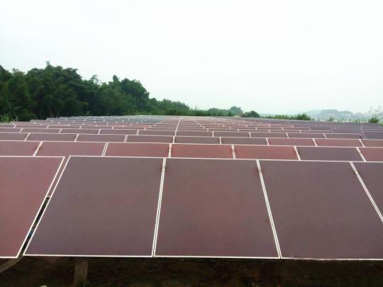鄭義祥家空地上的光伏發(fā)電板,頗為壯觀。
