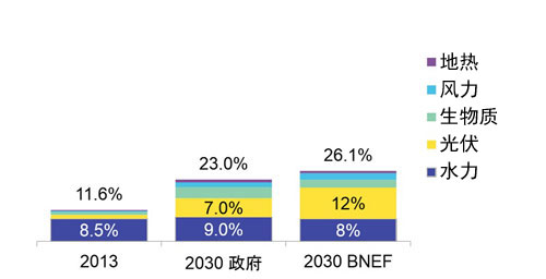 彭博新能源財(cái)經(jīng)(BNEF)預(yù)測的可再生能源在電源中所占比例(出處:BNEF)