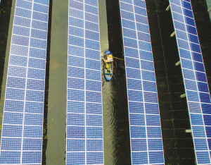 6月30日,位于桐鄉(xiāng)市河山鎮(zhèn)的浙江省首個“漁光互補”水上光伏電站正式并網(wǎng)發(fā)電,預計每年上網(wǎng)電量可達1000多萬千瓦時,節(jié)約標煤3500噸,相應減少二氧化碳排放9200噸。“漁光互補”發(fā)電項目是與農(nóng)業(yè)生產(chǎn)相結合的有益嘗試,它是將光伏組件布置于水面上方,上層用于太陽能發(fā)電、下層用于水產(chǎn)養(yǎng)殖的新型光伏系統(tǒng)工