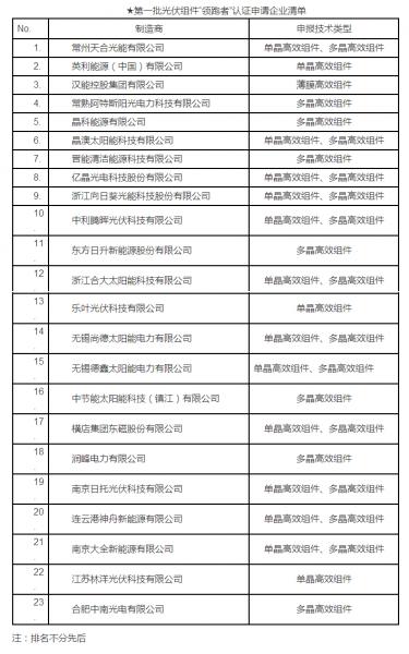 自2015年7月10日中國質(zhì)量認證中心(簡稱CQC)推出光伏發(fā)電產(chǎn)品“領跑者”認證計劃(簡稱“領跑者”認證計劃)以來,受到政府主管部門和行業(yè)各方的強烈關注,陸續(xù)有相關企業(yè)自愿申請加入“領跑者”認證計劃。經(jīng)過前期嚴格的資料審查,CQC已經(jīng)篩選出符合“領跑者”認證計劃申請要求的第一批光伏組件、光伏逆變器和光伏背板材料申請企業(yè)。