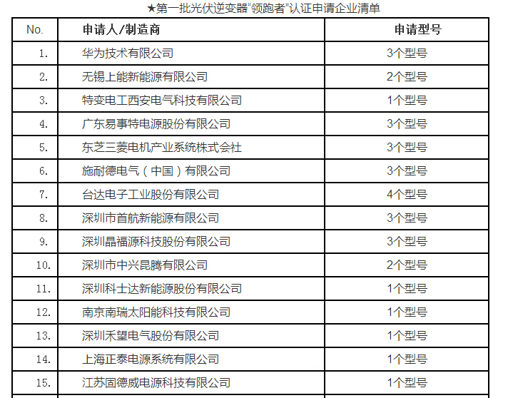 本次“領跑者”認證計劃參與企業(yè)數(shù)量之多、規(guī)模之大、覆蓋產(chǎn)業(yè)鏈之廣、技術類型之多樣,在國內(nèi)外同類型光伏產(chǎn)品性能評比活動中均刷新了最高紀錄!邦I跑者”認證計劃將遴選優(yōu)質(zhì)高效的光伏組件、高效可靠的光伏逆變器和長期耐久的光伏背板材料,哪些產(chǎn)品能夠脫穎而出,引領行業(yè),請時刻關注“領跑者”認證計劃,“領跑者”認證計劃將會告訴您最終答案。詳見www.cqc.com.cn/pv “領跑者”認證計劃專欄。