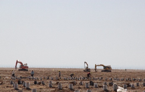 在新疆某投資有限公司3萬(wàn)千瓦光伏并網(wǎng)發(fā)電項(xiàng)目建設(shè)現(xiàn)場(chǎng),當(dāng)了解到,公司的接入系統(tǒng)方案已獲新疆電網(wǎng)公司批復(fù),目前已完成1.57億元投資!澳壳皥(chǎng)區(qū)已平整,光伏基樁已打完,支架一到就可以對(duì)光伏組件進(jìn)行安裝!惫卷(xiàng)目經(jīng)理?xiàng)铢i飛介紹著。