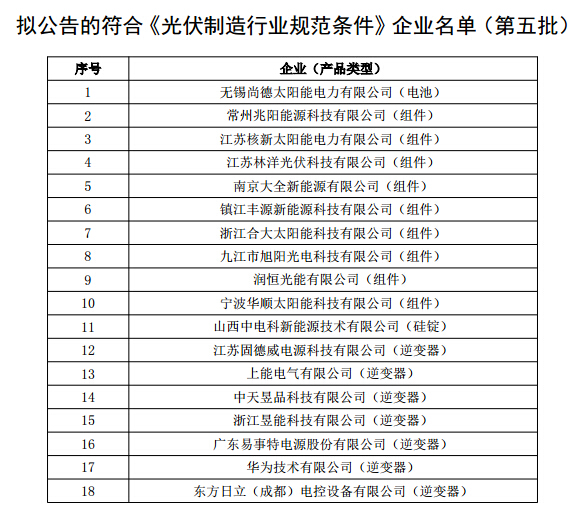 附件:擬公告的符合《光伏制造行業(yè)規(guī)范條件》企業(yè)名單(第五批)