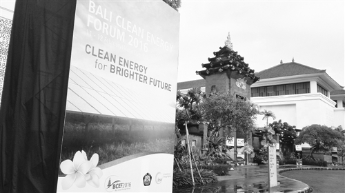 首屆“巴厘島清潔能源論壇”會場外景,巴厘島作為國際知名旅游城市,正致力于打造“綠色城市”。