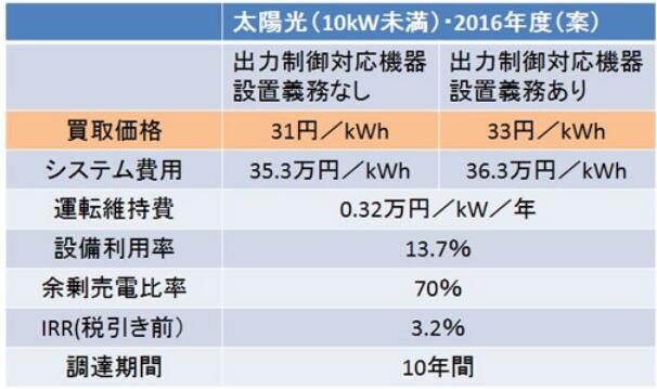 關(guān)于2016年度光伏發(fā)電(不足10kW)采購(gòu)價(jià)格和采購(gòu)期的委員長(zhǎng)草案