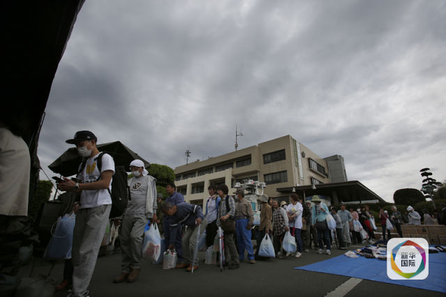 4月16日,在日本九州熊本縣益城町,災(zāi)民排隊等候領(lǐng)取食物。 新華社/美聯(lián) 圖片顯示,震后的熊本縣天色陰沉。據(jù)日本氣象廳通報,災(zāi)區(qū)不久將有降雨發(fā)生,局部或有暴雨,恐再次引發(fā)災(zāi)區(qū)內(nèi)山體滑坡、河流潰堤等次生災(zāi)害,同時還有可能發(fā)生強(qiáng)烈余震。